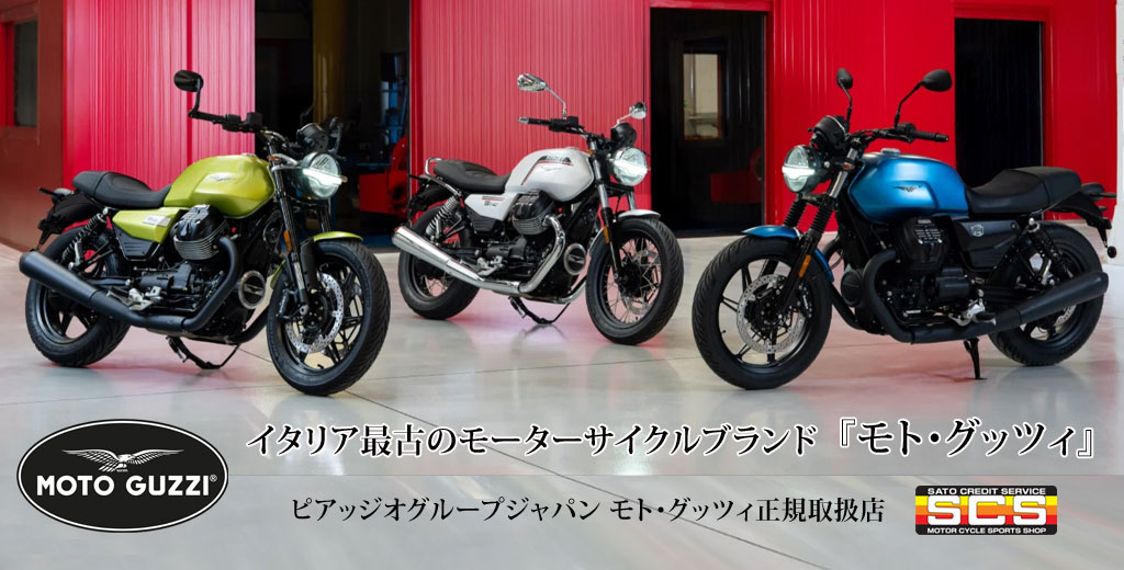 イタリアンバイクならではの美しいスタイリング。伝統と歴史を持つモトグッツィをSCSがお届けします。